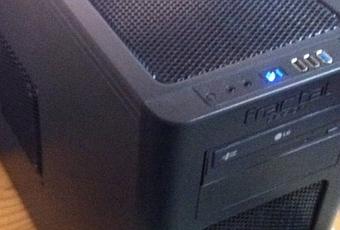 Vorne am Deckel des Gehäuses sind 3x USB (1x USB 3.0, 2x USB 2.0) und Mikrofon- bzw. Kopfhörerbuchsen eingebaut. Eine kleine Abwertung kommt durch den Einschaltknopf zustande, dieser scheint manchmal nicht zu „reagieren" und muss tief hereingedrückt werden. Dafür ist er blau illuminiert.
