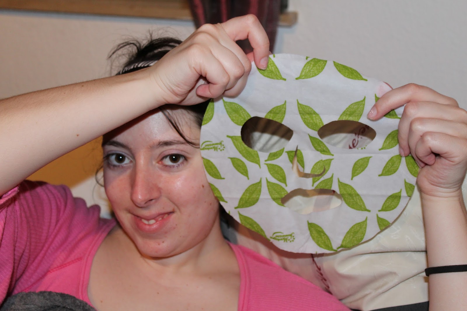 Meine Meinung:Die Gesichtsmaske ist grün und blau gehalten.Darauf ist eine Frau mit der Gesichtsmaske abgebildet.Das Sachet lässt sich oben ganz einfach aufreißen um die Tuchmaske heraus zunehmen.Danach wird die Tuchmaske auf das Gesicht gelegt und etwas aufgedrückt.Man nimmt sofort den Geruch vom Teebaumöl und Minze war, auf der Haut brannte die Maske etwas.Nach dem Entfernen der Maske sieht die Haut gleich viel erholter aus, fühlt sich auch viel Weicher an.