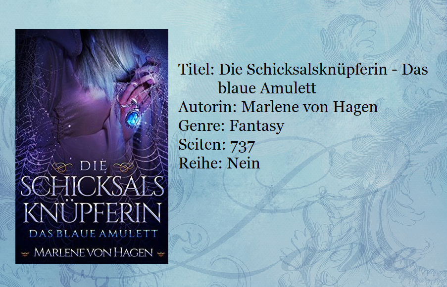 Eine erfahrene Kriegerin. Ein unbedarfter Schreinerbursche. Ein Mädchen, das Stimmen hört. Die Schicksalsknüpferin zieht die Fäden enger zusammen und verknotet sie zu einem neuen Gebilde, denn die Blinde Sehende darf niemals an das Blaue Amulett gelangen. Ein Krieg steht bevor, sie kann es deutlich spüren. Alleine schafft die Schicksalsknüpferin es nicht, die Blinde Sehende aufzuhalten. Sie braucht die Hilfe von einfachen Geschöpfen, um dem entgegenzuwirken, was ihnen allen bevorsteht. Niemand sieht, welche Gefahr der Welt droht. Nur sie alleine vermag es. Denn sie ist die letzte Schicksalsknüpferin. Alle Last liegt auf ihr und den drei Fäden, die sie zu einem dichten Spinnennetz formt. Quelle