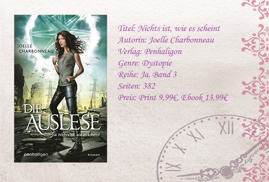 Mein FazitEin gelungener Abschluss der Trilogie, der allerdings ein paar kleine Schwächen aufweist. Mir persönlich ging es zu schnell und die Beziehungen der Charaktere haben mir gefehlt. Jedoch konnte mich die Autorin durch die Wendungen und Handlungen überzeugen.Meine Bewertung![[Rezension] Nichts ist, wie es scheint von Joelle Charbonneau [Rezension] Nichts ist, wie es scheint von Joelle Charbonneau](http://m3.paperblog.com/i/127/1273036/rezension-nichts-ist-wie-es-scheint-von-joell-L-VbpCIx.png)