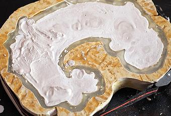 Endlich ist die Gussform fertig, die wir am 08. September angekündigt haben, damals stand ja nur das Tonmodell. Die fertige Form besteht aus einer Stützhülle aus Gips und einer dünnwandigen Silikonform, die darin eingebettet ist.