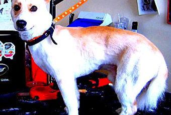 Der kleine Romeo stammt aus einer Tötungsstation in Bulgarien und wurde dort kurz vor der Tötung gerettet. 2,5 Jahre ist er jetzt alt und trotz seiner Ängstlichkeit ein kleiner dominanter Hund, der mich zum Fressen gern hatte. Da musste ich dann schon konsequent durchgreifen, damit eine Pflege überhaupt möglich war. Aber zum Schluss konnte ich dann – ohne Maulkorb – noch seinen Kopf zurechtmachen und alle waren wieder zufrieden.