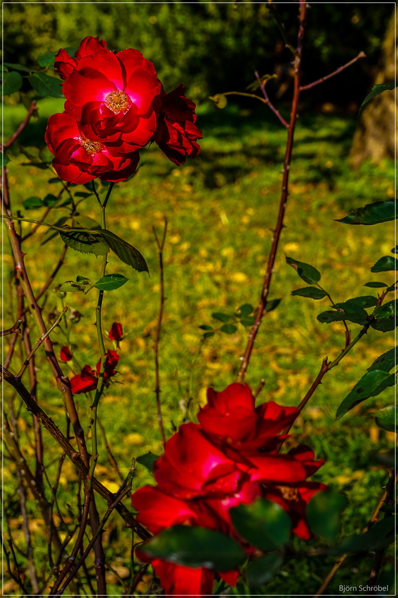 Nach Ende der schrecklichen Kriegsjahre und der großen Bombenangriffe, welche die Stadt Darmstadt fast vollständig zerstört hatten, wurden im Park - welcher damals der Großherzoglichen Vermögensverwaltung gehörte - mehrere Künstlerhäuser errichtet, auch davon habe ich schon erzählt.Die Randbezirke des Park Rosenhöhe wurden in den 1970er Jahren weiter bebaut und der Park wecheselte 1980 in den Besitz der Stadt Darmstadt über.Mittlerweile war vom einstigen Park nicht mehr viel zu sehen, vieles war verwuchert und verwildert. Erst in den letzten Jahrzehnten kümmert man sich wieder intensiv, auch mit der Hilfe eines Fördervereines, um die Pflege des Park Rosenhöhe.Weshalb so wenig Rosen zu sehen sind?Ganz einfach, weil sie schon verblüht waren, aber ich zeige Dir natürlich auch noch den blühenden Teil des Park Rosenhöhe, doch dies wird noch etwas dauern.Ich hoffe Dir hat unser kleiner Rundgang gefallen, und wenn Du Lust auf weitere Herbsteindrücke hast, dann darfst Du mich gerne demnächst in den herbstlichen Park Schönbusch begleiten.Liebe GrüßeBjörn :-)