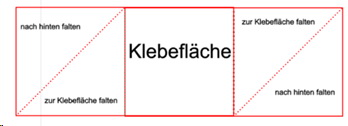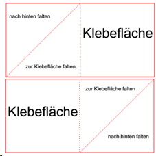 diagonal halbieren und auf die 4 „Flügel“ kleben