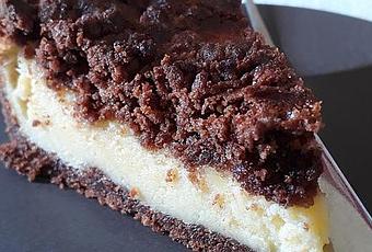 Das Mehl mit der Stärke und dem Backpulver mischen und in eine Schüssel sieben. Den Puderzucker und die fein geriebene Schokolade dazugeben. Butter in Würfeln, Eier und Salz dazugeben und schnell mit kühlen Händen zu einem Teig verkneten. Kalt stellen. Nach der Ruhephase Boden und Rand (3/4 hoch) einer 26er Springform mit dem Teig auskleiden. ¼ vom gesamten Teig vorher abnehmen und aufheben, um ihn später auf die Quarkmasse, in Stücke zerzupft, zu verteilen.