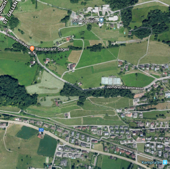 Oben die Stiftung Balm (Bus). Rot das Sageli. Unten rechts der