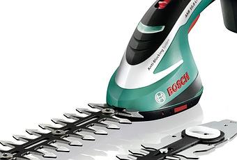 Das Gerät ist ein Drei-in-Eins-Gerät. Sie erhalten eine Gras-, Strauch und Formschnittschere in einem durch das Bosch Akku Scheren-Set. Die Schere wiegt nur 900 g und hat eine Akkulaufzeit von bis zu 100 Minuten. Sie erhalten zudem ein sehr kompaktes und handfreundliches Gerät mit einem Anti-Blockier-System für zusätzliche Schnittleistung. Dank dem werkzeuglosen Messerwechselsystem ist das Wechseln sehr leicht