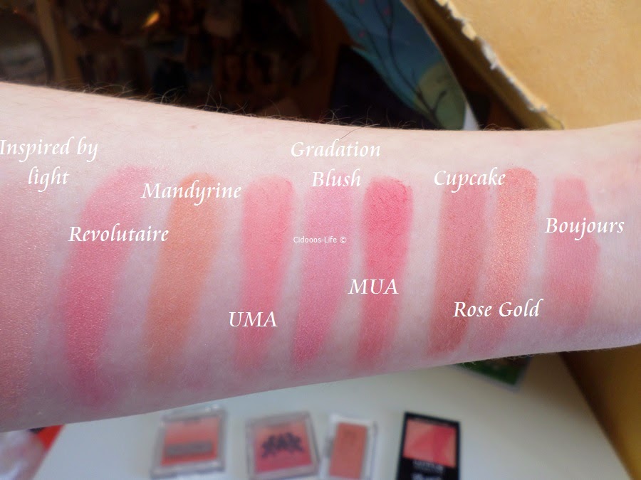 Auch hier wunderschöne Farben, schade das man nicht alle Blushes gleichzeitig tragen kann.Mir ist übrigens aufgefallen, dass sich sehr viele Swatches arg ähneln, aber die meisten sind Geschenke und/oder limitiert, da habe ich schon irgendwie ein schlechtes Gefühl sie weg zuwerfen :DViele der Produkte hier sind PR-Samples, wenn ihr genauer wissen wollt welche, schreibt mir ein Kommentar! Die alle zu kennzeichnen war mir zu aufwendig.Bin immer noch schockiert, sooo viele Blushes :D Dafür, dass ich vor ca. 3 Jahren Blushes total unnötig fand :D Naja.Wie viele Blushes habt ihr?