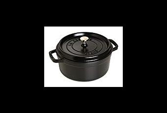 Staub 1102225 Cocotte/Bräter, rund mit Deckel 22 cm, 2,6 L, mit mattschwarzer Emaillierung im Inneren des Topfes, schwarz