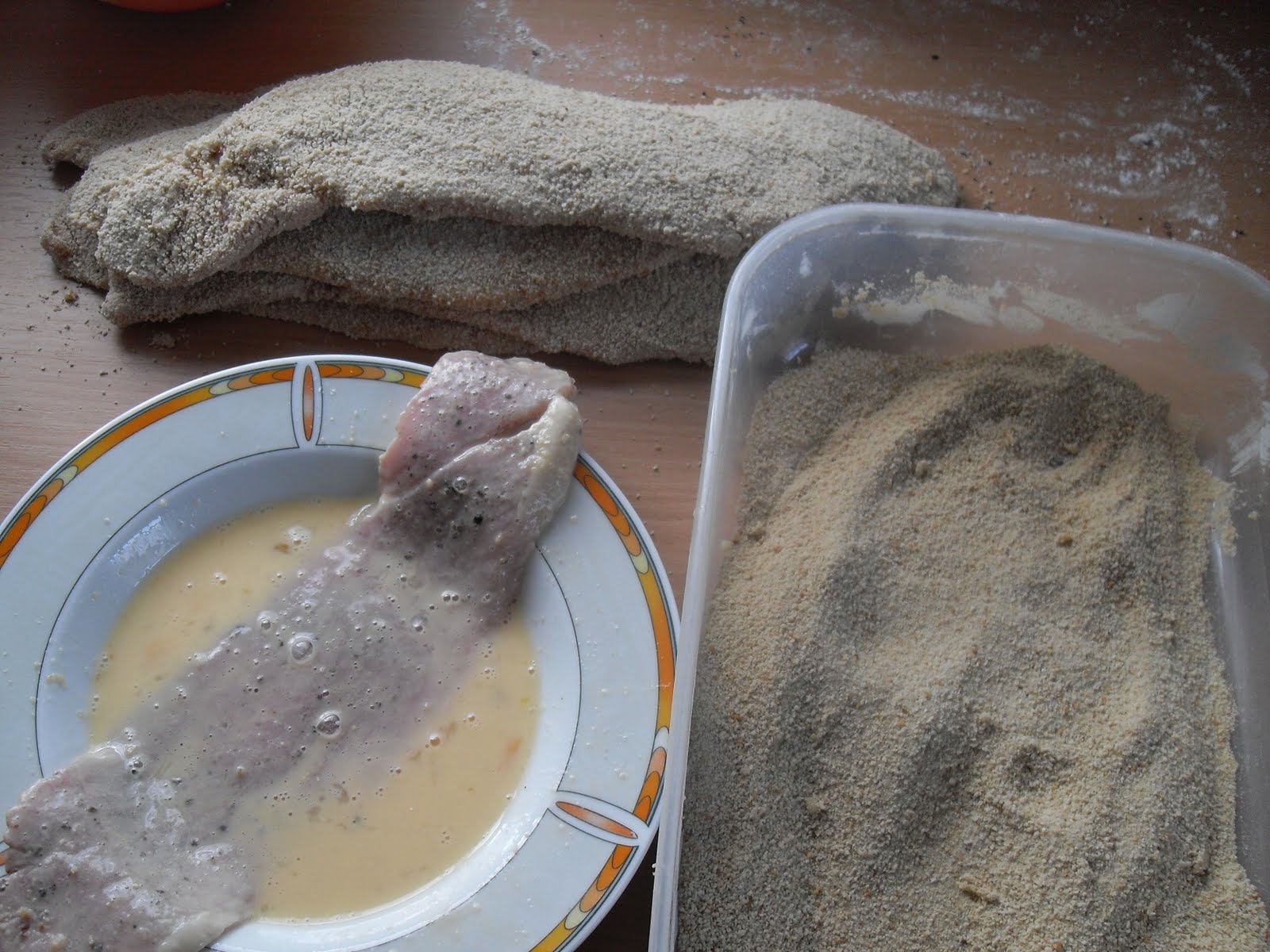 Anmerkungen:- das ist die klassische Art panierte Schnitzel zuzubereiten- ein "Wiener Schnitzel" besteht aus Kalbfleisch und wird mit Zitrone (Spalten/Scheiben) serviert- lecker sind auch "Jägerschnitzel" (Pilzsoße) oder "Zigeunerschnitzel (Zigeuner- bzw. Pusztasoße)- wir essen die Schnitzel auch gerne mit Pilzgemüse- man kann auch Fischfilets auf diese Weise panieren- vor ein paar Tagen habe ich versucht Fleisch mit "Maggi knusprig aus dem Ofen" zu panieren und meine "Männer" und ich waren alles andere als begeistert :-( Da ich immer große Mengen zubereiten muss (ich habe hier halt "fleischfressende Pflanze" zuhause), dachte ich, es wäre eine tolle Lösung statt immer 2-3 Pfannen zu benutzen, aber ich bleibe lieber bei meiner Pfannenaktion :-)- alternativ zur Pfanne kann man auch das Fleisch in der Friteuse frittieren, dann werden die Fleischstücke besonders knusprig, zart und saftig- je nach Dicke der Schnitzel, kann man sie auch Klopfen! Ich lege die Fleischscheiben immer zwischen zwei Lagen Klarsichtfolie und plattiere sie etwas in dem ich mit einem schweren gußeisernen Topf darauf schlage- alternativ zum Paniermehl kann man auch zerkleinerte Chips, Tortillachips, Cornflakes oder ähnliches nehmen