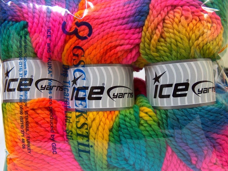 Das Garn selbst ist von ICE - yarns aus der Türkei, da kann man tolle Garne sehr günstig bekommen, der Versand geht ratztfatz ( 2 Tage!!) und wenn die Versandkostenm zunächst sehr hoch erscheinen, umgerechnet auf die Wolle ist es insgesamt supergünstig, nur kann man die Knäuele da nicht einzeln bekommen, sondern immer nur in Packs. HIER ist zB ein Reseller.Verstrickt hab ich einen 100g Strang, LL 100m/100g, 100% Wolle