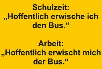 Auf Facebook teilen Vorige Folgende Schulzeit: „Hoffentlich erwische ich den Bus.“... Autor des Artikels : istdaslustig Zum Original-Artikel Schulzeit: „Hoffentlich erwische ich den Bus.“ Arbeit: „Hoffentlich erwischt mich der Bus.“ Hier geht es zum Artikel Mehr Lustiges auf www.istdaslustig.de Auf Facebook teilen Vorige Folgende Das könnte Ihnen gefallen Mehr