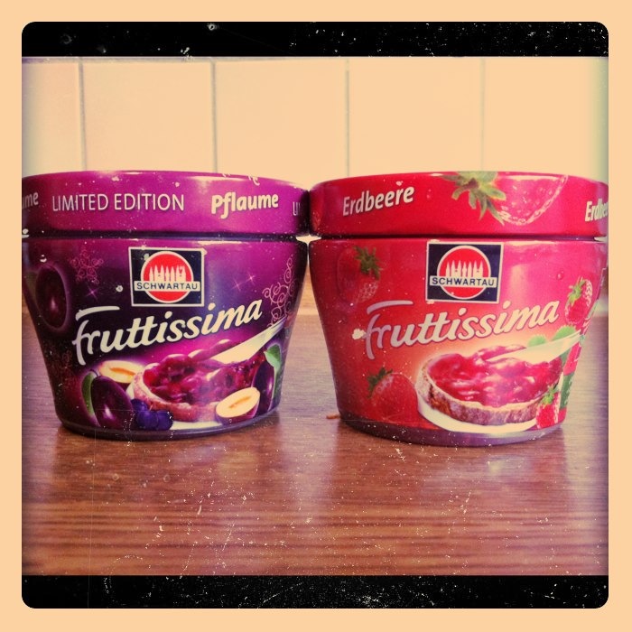 Ich entschied mich für die Sorten Erdbeere und Pflaume.Erdbeere ist für mich die klassischste aller Marmeladen. Damit macht man nie etwas falsch. Pflaume gibt es als Limited Edition, allein deshalb musste sie mit. Aber ich liebe Pflaumen sowieso, daher hätte ich die Sorte auch gewählt, wenn sie im Dauersortiment wäre.Meine Eltern haben ebenfalls die pflaumige Variante von mir "geschenkt" bekommen.