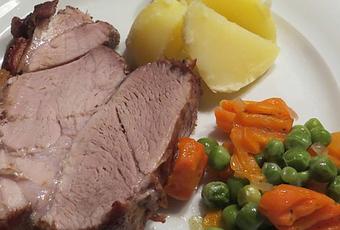 - 1 kg Schweinebraten mit Schwarte, wir: aus der Keule, vom „Steigerwälder Schwarzerle“