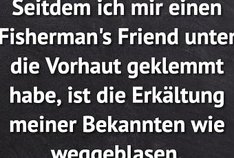 Auf Facebook teilen Vorige Folgende Seitdem ich mir einen Fisherman's Friend unter... Autor des Artikels : istdaslustig Zum Original-Artikel Seitdem ich mir einen Fisherman's Friend unter die Vorhaut geklemmt habe, ist die Erkältung meiner Bekannten wie weggeblasen. Hier geht es zum Artikel Mehr Lustiges auf www.istdaslustig.de Auf Facebook teilen Vorige Folgende Das könnte Ihnen gefallen Mehr
