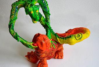 Acryl auf Figur aus Papmaché, Gips, Modelliermassen
