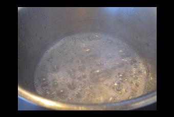 Das Zuckerwasser noch heiß zu den pürierten Maronen geben.
