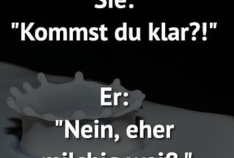 Auf Facebook teilen Vorige Folgende Sie: "Kommst du klar?!" Er: "Nein, eher... Autor des Artikels : istdaslustig Zum Original-Artikel Sie: "Kommst du klar?!" Er: "Nein, eher milchig weiß." Hier geht es zum Artikel Mehr Lustiges auf www.istdaslustig.de Auf Facebook teilen Vorige Folgende Das könnte Ihnen gefallen Mehr