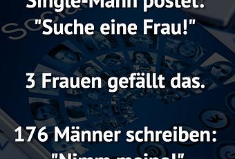 Auf Facebook teilen Vorige Folgende Single-Mann postet: "Suche eine Frau!" 3... Autor des Artikels : istdaslustig Zum Original-Artikel Single-Mann postet: "Suche eine Frau!" 3 Frauen gefällt das. 176 Männer schreiben: "Nimm meine!" Hier geht es zum Artikel Mehr Lustiges auf www.istdaslustig.de Auf Facebook teilen Vorige Folgende Das könnte Ihnen gefallen Mehr