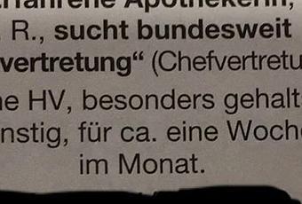 Daraus spricht fast die pure Verzweiflung überhaupt einen Apotheker (oder Apothekerin) zu finden.