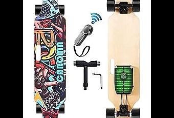 Caroma 90cm Skateboard Elektrisches, Elektrisches Longboard mit Fernbedienung, 700W Doppelmotoren, 25km/H Höchstgeschwindigkeit, 16-20km Reichweite, E Skateboard für Erwachsene