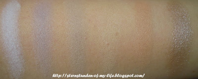Die Palette enthält 8 matte und 4 schimmernde Minerallidschatten. Die Pigmentierung der Farben ist wieder gut bis sehr gut. Diesmal muss ich aber fragen: "Sleek, was habt ihr euch bei der oberen Reihe gedacht?" Zum Highlighten und Verblenden - ja. Aber sonst sind die Farben nicht so "sichtbar". Dafür holt die untere Reihe alles wieder raus!