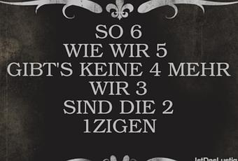 Auf Facebook teilen Vorige Folgende SO 6 WIE WIR 5 GIBT'S KEINE 4 MEHR WIR 3 SIND... Autor des Artikels : istdaslustig Zum Original-Artikel SO 6 WIE WIR 5 GIBT'S KEINE 4 MEHR WIR 3 SIND DIE 2 1ZIGEN Hier geht es zum Artikel Mehr Lustiges auf www.istdaslustig.de Auf Facebook teilen Vorige Folgende Das könnte Ihnen gefallen Mehr