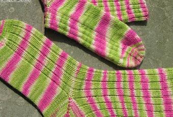 Zuerst wär da ein Paar in Gr 37/38 aus einer von mir handgefärbten Trekking 4 -fach namens "Sommerfrische"