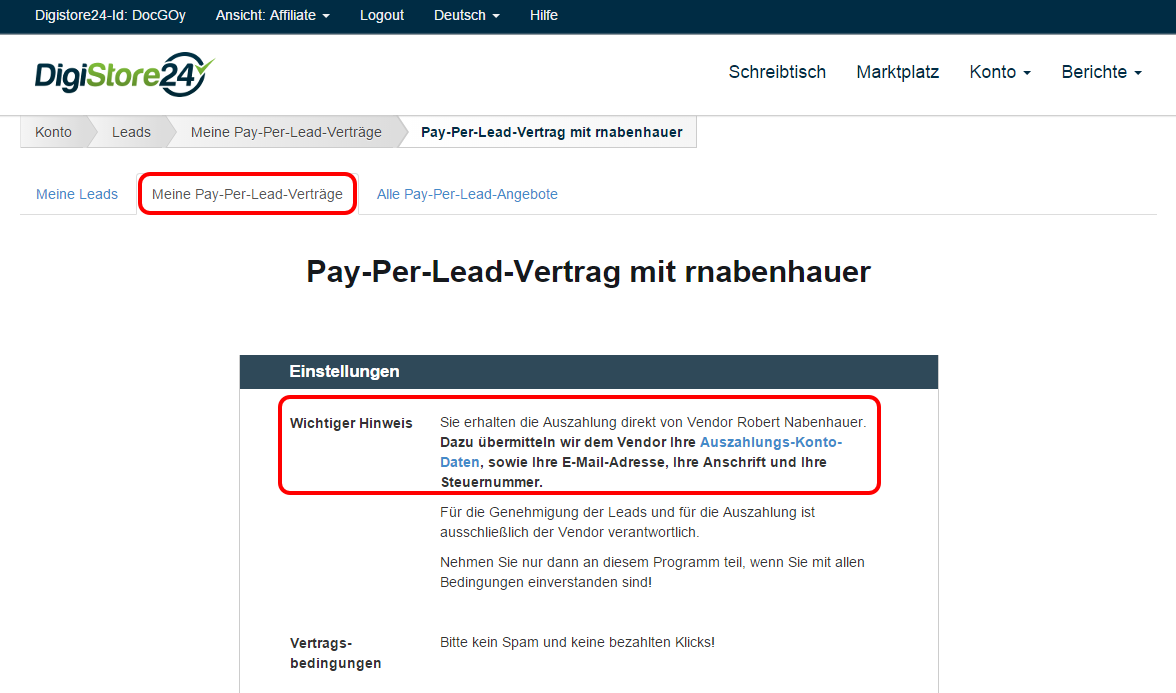 12. Was "Abgelehnt" wurde, weil "Affiliate hat keinen Lead-Vertrag" wird per Hand frei geschaltet, danach erfolg die Freischaltung automatisch.
