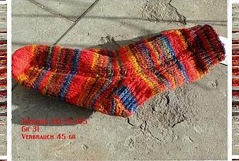 Da ich ja immer irgendwie stricken muss hab ich das erste Paar im neuen Jahr bereits gestern abgenadelt. Allerdings nur Kindersöckchen in Gr 31- der Verbrauch lag bei 45 gr.