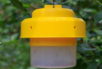 Eine Pheromon-Falle lockt Insekten mithilfe von Sexuallockstoffen an. Die Tiere fallen in einen Behälter und können so unkompliziert entfernt werden.