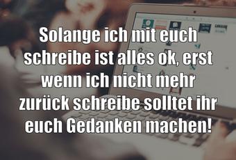Auf Facebook teilen Vorige Folgende Solange ich mit euch schreibe ist alles ok,... Autor des Artikels : istdaslustig Zum Original-Artikel Solange ich mit euch schreibe ist alles ok, erst wenn ich nicht mehr zurück schreibe solltet ihr euch Gedanken machen! Hier geht es zum Artikel Mehr Lustiges auf www.istdaslustig.de Auf Facebook teilen Vorige Folgende Das könnte Ihnen gefallen Mehr