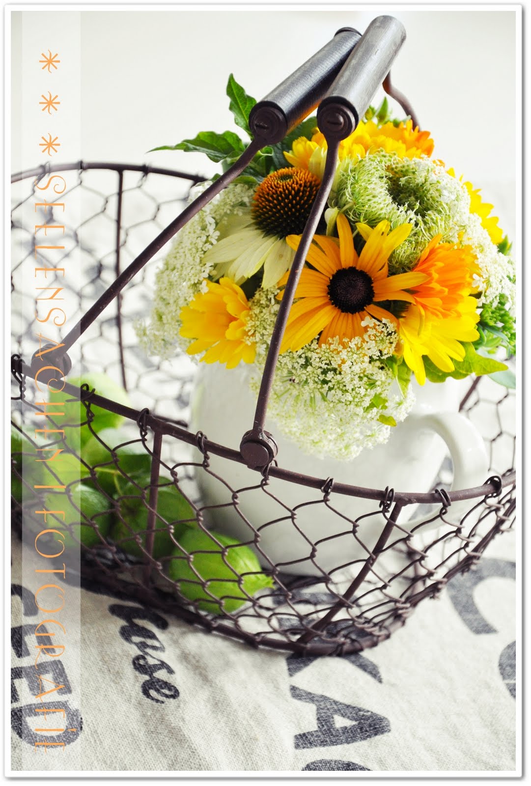 Ja sapperlott! Da mach ich SO einen schönen SOMMERblumenstrauß und ich hör von euch durch die Bank, wie herbstlich er nicht aussieht! Das sind ALLES SOMMERblumen, meine Damen, frisch aus dem Garten, herbstlich ist da einzig und allein eure Stimmung :-) ! Also - noch ein Versuch, den Strauß ins BESTE LICHT zu setzen und euch darauf einzustimmen, dass der SOMMER in den nächsten Tagen hier und dort und überall Einkehr nimmt - nämlich in unseren HERZEN!