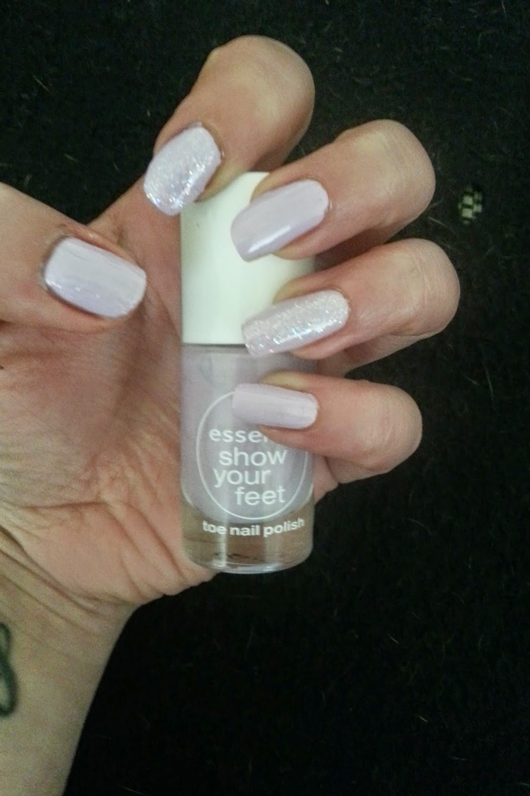 Da ist er :) Essence show me your feet in einem wunderbaren Fliederton. Ich mag diese Art von Farben die nicht knallig sind aber doch etwas hermachen. Ich habe gerade einmal für 0,45€ bei Rossmann ergattern. Bei dem Preis konnte ich nicht nein sagen :)