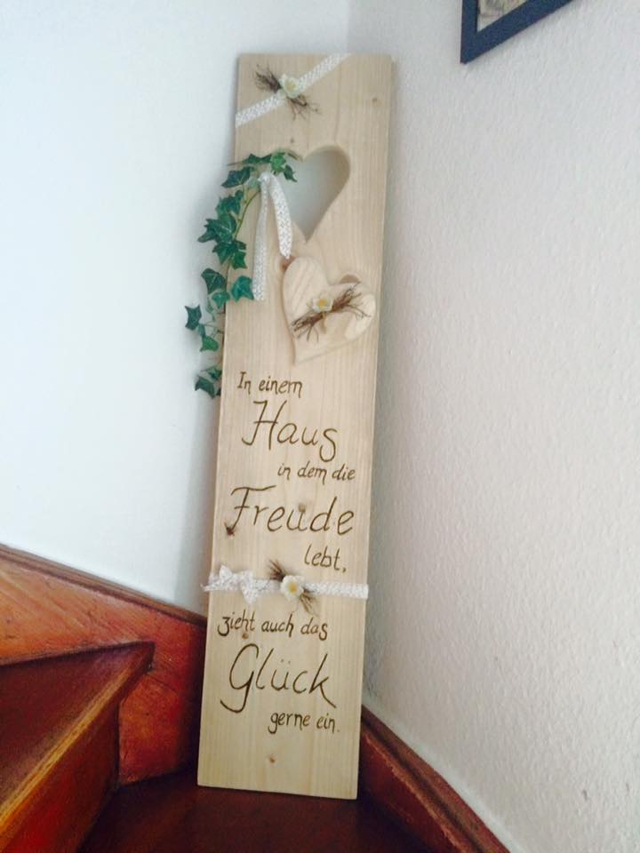 Am Samstag haben wir meinen Papa und meine Großeltern besucht. Dort trinken wir nachmittags immer zusammen mit meinem Onkel und meiner Tante Kaffee und essen Kuchen. Meine Tante backt die leckersten und schönsten Kuchen und Torten überhaupt! Sie hatte Geburtstag und ich habe ihr nachträglich ein Dekoschild aus Holz gebastelt. Es war mein erster Versuch. Ich bin noch nicht ganz zufrieden, aber sie hat sich sehr gefreut.
