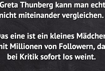 Auf Facebook teilen Vorige Folgende Sorry, aber Donald Trump und Greta Thunberg... Autor des Artikels : istdaslustig Zum Original-Artikel Sorry, aber Donald Trump und Greta Thunberg kann man echt nicht miteinander vergleichen. Das eine ist ein kleines Mädchen, mit Millionen von Followern, das bei Kritik sofort Ios weint. Das andere ist Greta. Hier geht es zum Artikel Mehr Lustiges auf www.istdaslustig.de Auf Facebook teilen Vorige Folgende Das könnte Ihnen gefallen Mehr