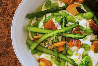Spargel dicke Bohnen Pfifferlinge Buttermilch
