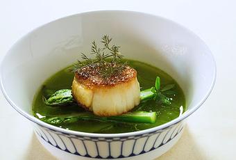 Spargeltee Jakobsmuschel Ziegenbutter Waldmeister