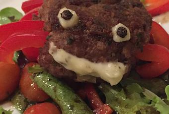 Der Knaller beim Vier-Gang-Menü: Die Spinnen-Boulette unseres ältesten Enkel.