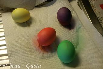 Meine "Pastelltöne" waren schon mit Essig gemischt - also hab ich die Spitze nicht noch vorher behandelt.