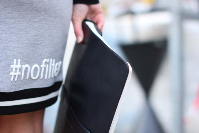 hoodie dress & mesh bomber jacket - New Yorker / clutch - Zara / earrings - vintage / high heels - Deichmann
