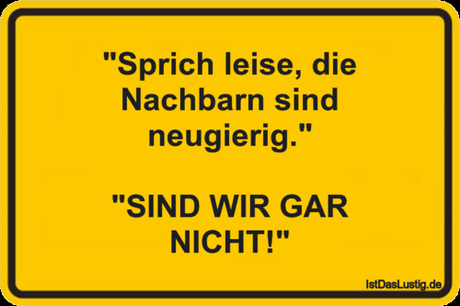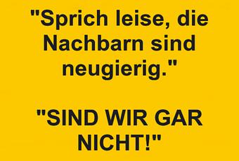 Auf Facebook teilen Vorige Folgende "Sprich leise, die Nachbarn sind neugierig."... Autor des Artikels : istdaslustig Zum Original-Artikel "Sprich leise, die Nachbarn sind neugierig." "SIND WIR GAR NICHT!" Hier geht es zum Artikel Mehr Lustiges auf www.istdaslustig.de Auf Facebook teilen Vorige Folgende Das könnte Ihnen gefallen Mehr