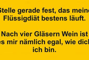 Auf Facebook teilen Vorige Folgende Stelle gerade fest, das meine Flüssigdiät... Autor des Artikels : istdaslustig Zum Original-Artikel Stelle gerade fest, das meine Flüssigdiät bestens läuft. Nach vier Gläsern Wein ist es mir nämlich egal, wie dick ich bin. Hier geht es zum Artikel Mehr Lustiges auf www.istdaslustig.de Auf Facebook teilen Vorige Folgende Das könnte Ihnen gefallen Mehr