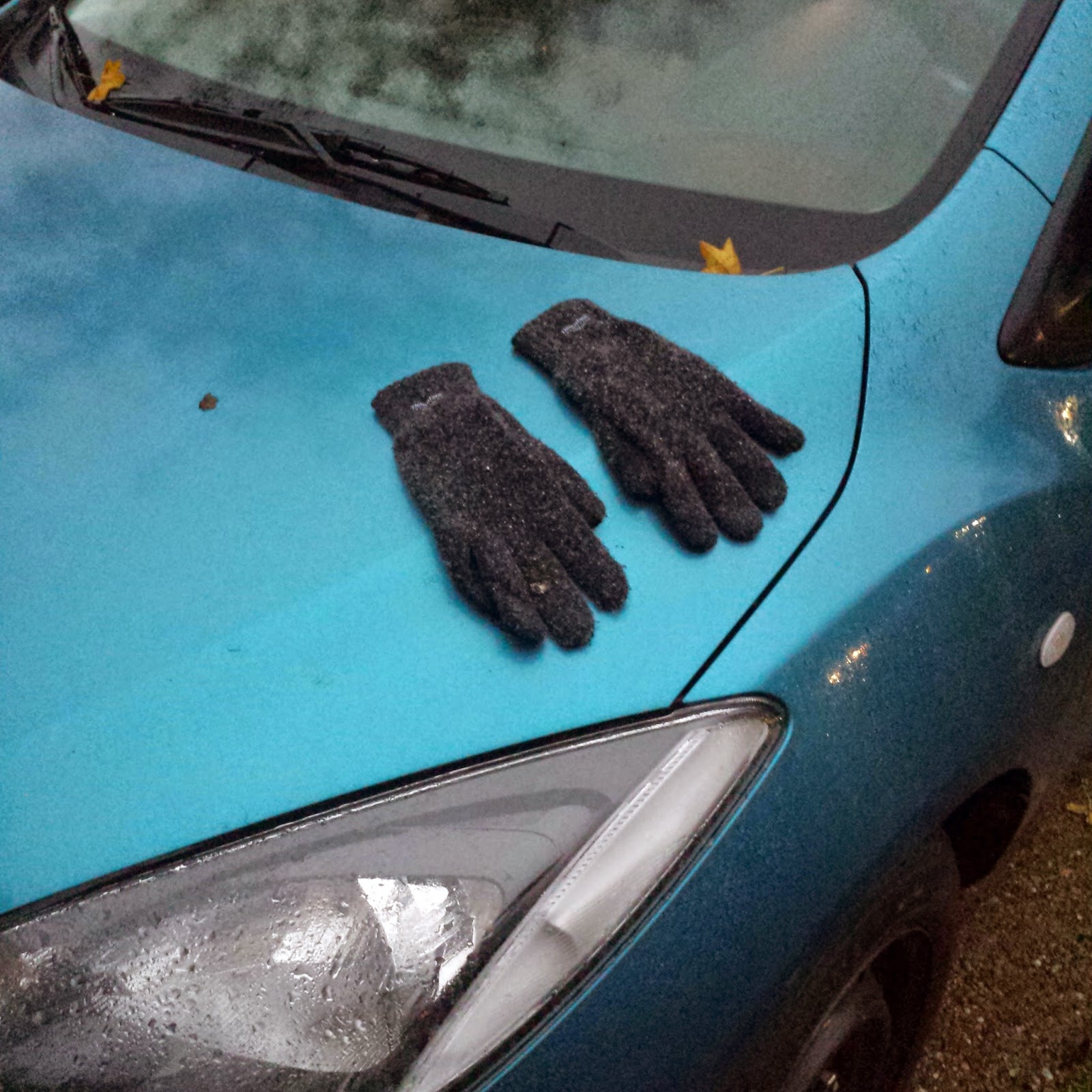 Am Auto angekommen, stellte sich heraus, dass es "nur" irgendwelche Handschuhe waren, von denen jemand vielleicht dachte, dass sie zu mir gehören, weil sie vermutlich neben meinem Auto lagen.