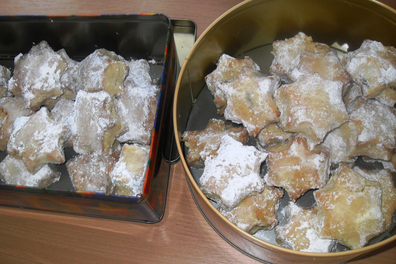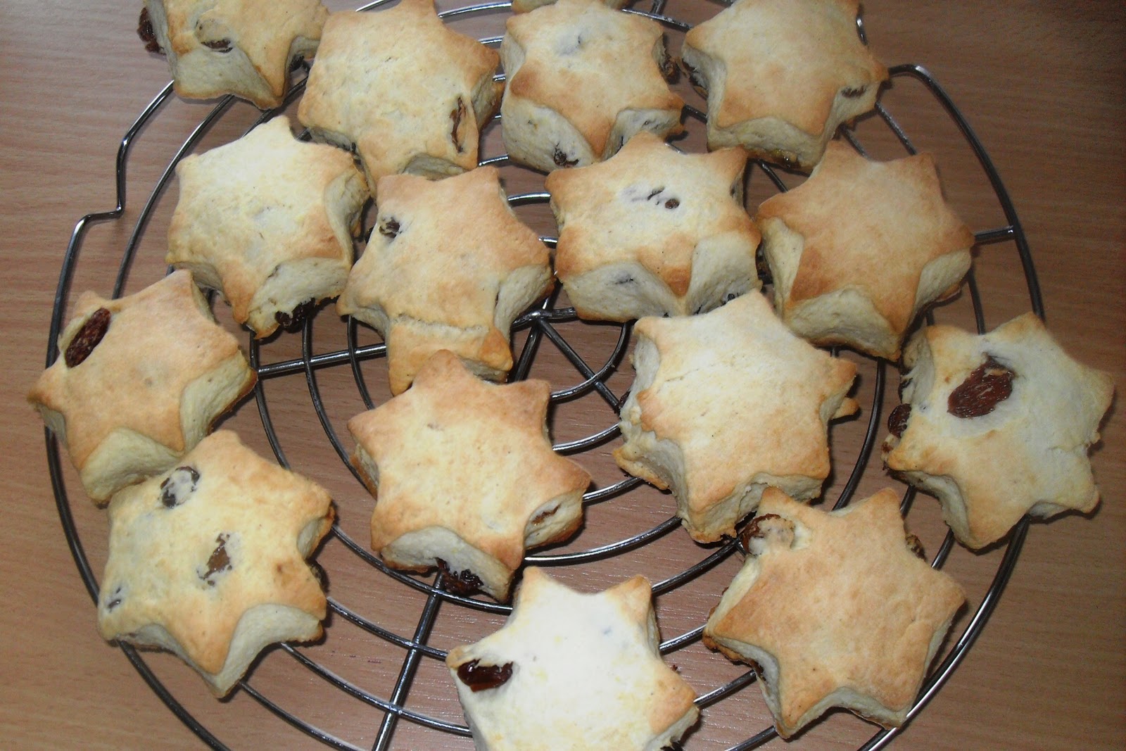 Die Sterne auf dem Backpapier komplett auskühlen lassen und danach in gut schließende Dosen füllen. Sie schmecken am besten nach 2 Tagen!Anmerkungen:- dieses Rezept ist eigentlich ein Quark-Rosinen-Stollen-Rezept, das meine Oma früher immer für mich gemacht hat, da ich kein Zitronat mag. Wer möchte kann aber ohne Probleme noch 100 g Zitronat /Orangeat einarbeiten- da hier, außer mir, niemand gerne Stollen isst, kam ich auf die Idee diese Sterne zu machen und siehe da...in Sternform mag sie auf einmal jeder und es sind fast schon alle aufgegessen ;-)- Stollengewürz gibt es fertig zu kaufen, ich mache es mir aber lieber immer selbst und zwar so: 50 g Zucker, Mark von einer Vanilleschote, 5 g Kardamom, 5 g Piment, 5 g Zimt, 1-2 Prisen gemahlene Nelken und etwas geriebene Zitronenschale. Wer fertig gekauftes benutzt, sollte sich an die Angaben auf der Packung halten- es ist ein etwas aufwendigeres Rezept (mächtig viel "Sauerei" am Ende), aber es lohnt sich!! Die Sterne sind so was von lecker :-)- man kann natürlich auch einfach einen Stollen daraus backen, die Backzeit beträgt dann ca. 60-70 Minuten (alles andere wie oben beschrieben)- als Stollen gebacken fest in Alufolie einwickeln und aufbewahren- auch sehr lecker mit Rum-Rosinen- wer etwas mehr "Biss" möchte, kann auch die gemahlenen Mandeln durch gehackte ersetzen