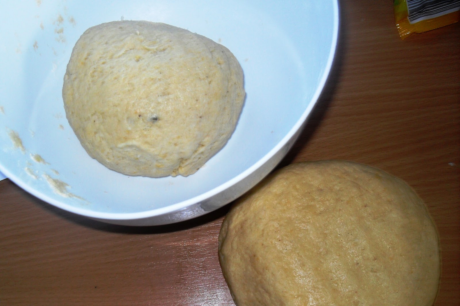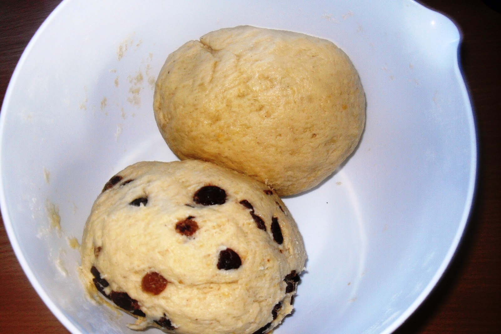 Zu zwei Teigkugeln formen und in eine Schüssel legen.