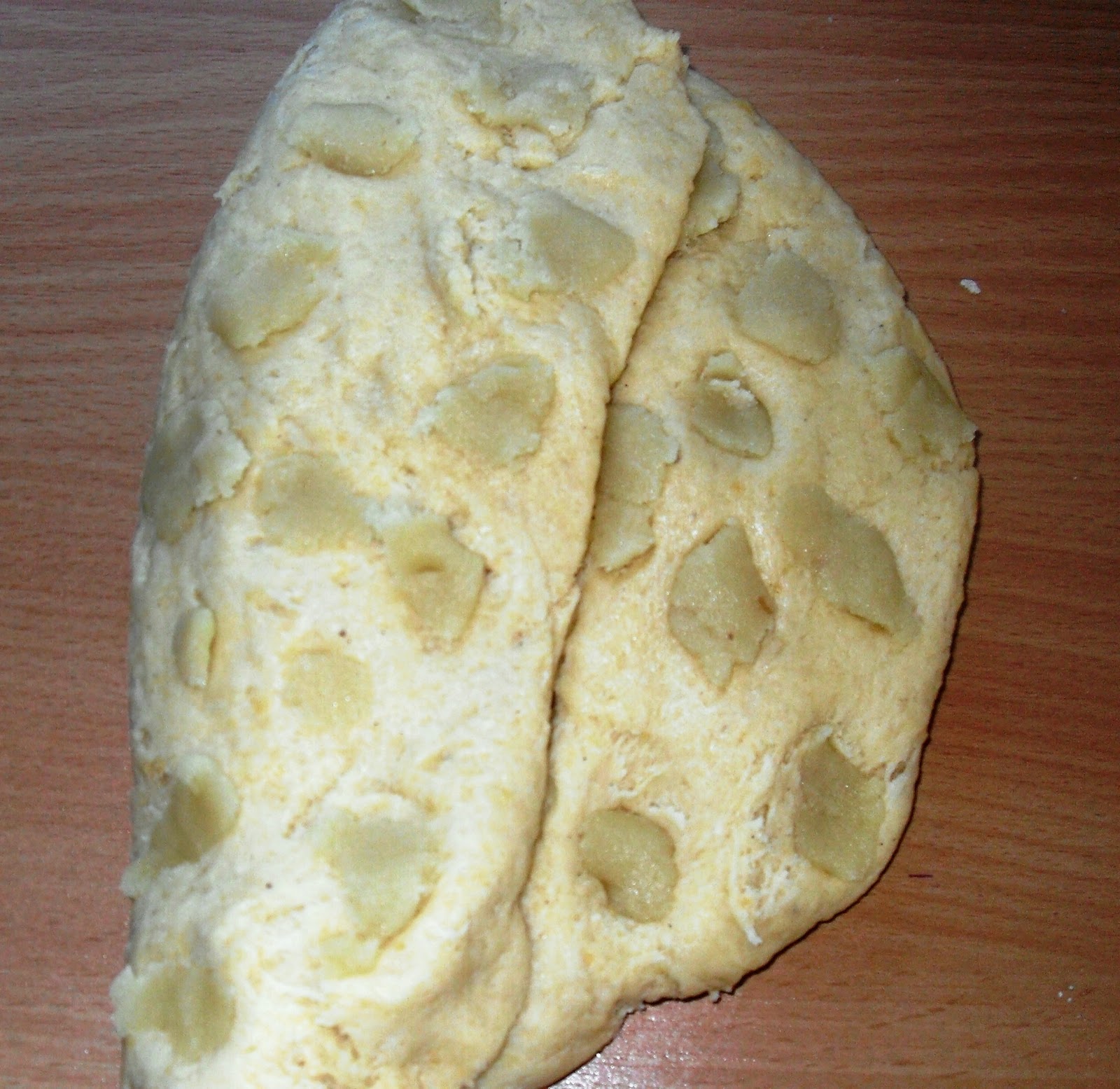 Zutaten:Teig500 g Mehl125 g Butter1 Päckchen Backpulver2 Eier (Gr. M)125 g Zucker1 Päckchen Vanillezucker250 g Magerquark1 Prise Salz1 EL Rum125 g gemahlene Mandeln1 EL Stollengewürz (selbstgemacht s. unten)"Füllung"75 g Rosinen75 g Marzipan (Rohmasse)Nach dem Backen:125 g Butter200 g PuderzuckerZubereitung:Alle Teigzutaten in eine große Schüssel geben und zu einem glatten Teig verkneten. In zwei Hälften teilen und unter die eine Hälfte das Marzipan (in kleine Stückchen zerrissen) und unter die andere Hälfte die Rosinen kneten.