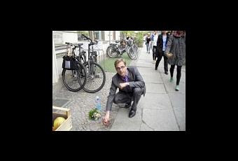 Anfangs guckten die Leute etwas irritiert auf den putzenden Mann mit Blumenstrauß und vermuteten eine Eintagsfliegenaktion. Mittlerweile gehört diese Aktion irgendwie zum Straßenbild. Links vor dem Eisladen die lange Schlange lachender Kinder, in der Mitte der Obst- und Gemüseladen mit den schönen frischen Auslagen und rechts davon, eine Etage tiefer mal wieder der Mann im Anzug und seiner Reinigerflasche. Die Leute lächeln und stupsen sich an: "Da ist er wieder. Das ist doch…“ Ja, das ist er und er kommt wieder.