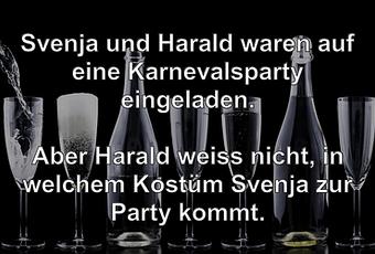 Svenja und Harald waren auf eine Karnevalsparty eingeladen. Da Svenja abends jedoch starke Kopfschmerzen bekam, bat sie Harald, alleine zu gehen und legte sich ins Bett.
