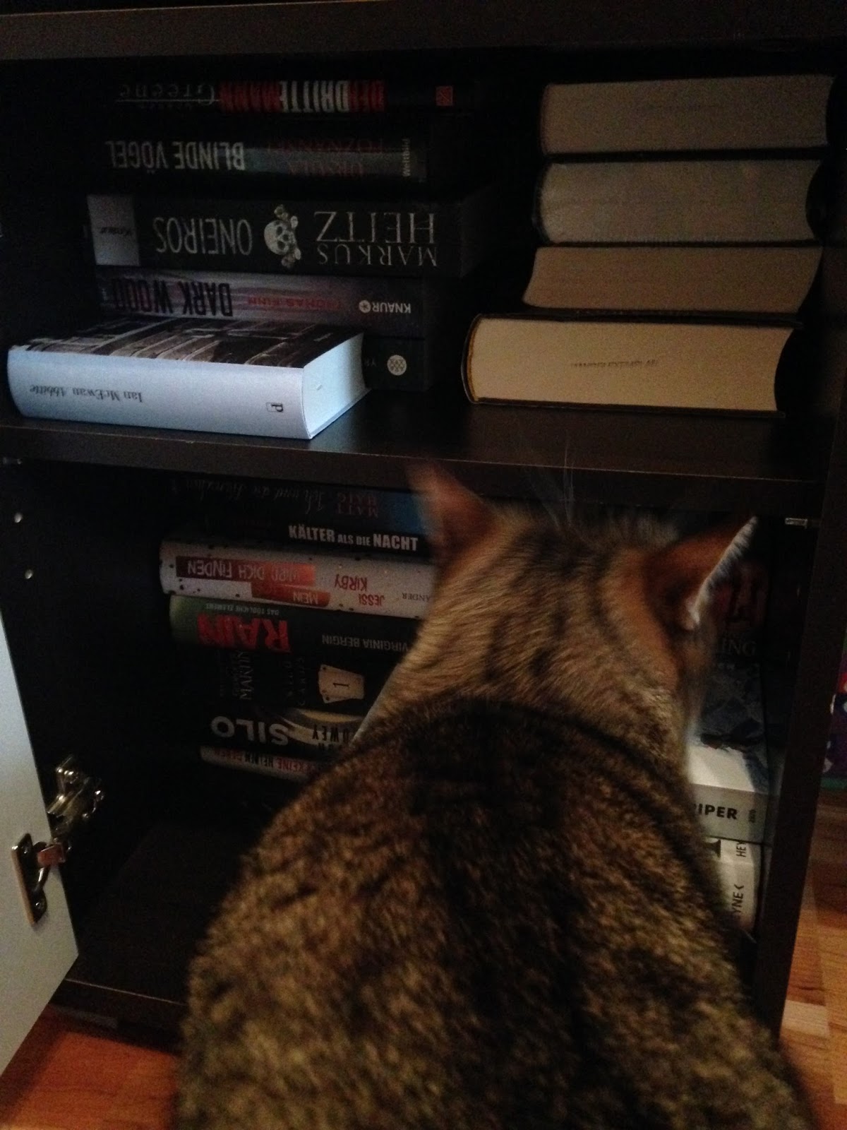 könnte, weil sie eben nicht zu sehen sind. Aber da mindestens einmal pro Monat eine Woche lang digital gelesen wird, ist der Reader tatsächlich noch nicht aus allen Nähten geplatzt.Man sieht bei der Unterbringung werden Unterschiede gemacht und SuBlinge werden deutlich von den gelesenen Exemplaren getrennt. Denn hier muss man schon gelesen sein, um sich im Regal einen aufrechten Platz zu verdienen. Das ist die goldene Regel, die für bestimmte Herrschaften gebrochen wird. Denn für manche Kings wird schon einmal eine Ausnahme gemacht. Das ist halt die High Society unter den ungelesenen Büchern und die wird teilweise von Vornherein im Luxury Resort alias King-Regal untergebracht. Allerdings dürfen sie nicht mit den gelesenen Büchern kuscheln, sondern wurden ganz dezent in eine eigene Ecke gedrängt.Aber alle ungelesenen Kings haben nicht so viel Glück gehabt, weil einige mit den anderen SuBlingen in der SuB-Höhle im Schreibtisch schlummern. Eine kuschelige 2-Sterne+ Unterkunft, im rustikalen Undercover-Stil, wo meistens die ganze Nacht hindurch getuschelt und gemunkelt wird. Her finden sich Dystopien, Liebesromane, Thriller und natürlich Horrorliteratur. Eine Hetz und eine Gaude haben wir hier, dass sich manchmal sogar der Schreibtisch hebt und der Kater die Schuld kriegt. :D